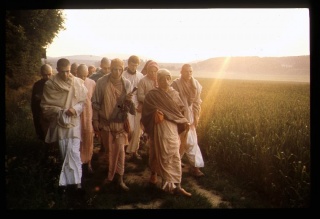 Ebből a versből azt is megtudhatjuk, hogy a nap beragyogja az egész naprendszert. Különféle univerzumok és naprendszerek vannak, napokkal, holdakkal és bolygókkal, de minden univerzumban csak egy nap van. Ahogyan azt a Bhagavad-gītā (10.21) elmondja, a hold szintén csillag (nakṣatrāṇām ahaṁ śaśī). A napfény a Legfelsőbb Úr lelki világa lelki ragyogásának | Ebből a versből azt is megtudhatjuk, hogy a nap beragyogja az egész naprendszert. Különféle univerzumok és naprendszerek vannak, napokkal, holdakkal és bolygókkal, de minden univerzumban csak egy nap van. Ahogyan azt a Bhagavad-gītā ([[HU/BG 10.21|BG 10.21]]) elmondja, a hold szintén csillag (''nakṣatrāṇām ahaṁ śaśī''). A napfény a Legfelsőbb Úr lelki világa lelki ragyogásának köszönhető. Az emberek általában akkor kezdenek el tevékenykedni, ha felkel a nap. A főzéshez tűz kell, s tűzre van szükség a gyárak működtetéséhez is, és még sorolhatnánk, mi mindenhez. A tűz tehát nagyon sok dologhoz szükséges. Láthatjuk, hogy a napfény, a holdfény és a tűz nagyon kedves az élőlények számára. Nélkülük senki sem élhetne. Ha tehát megértjük, hogy a nap, a hold, a tűz fénye és ragyogása mind az Istenség Legfelsőbb Személyiségéből, Kṛṣṇából árad, akkor a Kṛṣṇa-tudatunk fejlődni kezd. A hold fénye táplálja a zöldségeket. A holdfény olyannyira kellemes, hogy az emberek könnyen megérthetik ebből, hogy Kṛṣṇa, az Istenség Legfelsőbb Személyisége kegyéből élnek. Az Ő kegye nélkül nem lenne nap, hold és tűz, s ezek nélkül senki sem élhetne. E néhány gondolat célja az, hogy felébressze a Kṛṣṇa-tudatot a feltételekhez kötött lelkekben. | ||