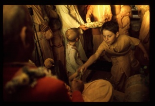«A veces se pretende que las especulaciones impersonales de grandes filósofos tienen como propósito el progreso del conocimiento, sin tener en cuenta los principios rituales religiosos. Pero en realidad, los principios rituales religiosos están destinados al progreso del conocimiento espiritual. Con la práctica de rituales religiosos se alcanza finalmente la meta suprema del conocimiento, al comprender que Vāsudeva, la Suprema Personalidad de Dios, es la causa de todo. Se dice claramente en el Bhagavad-gītā que hasta aquellos que preconizan solos el conocimiento, sin proceso religioso ritual alguno, progresan en el conocimiento tras muchas, muchas vidas de especulación, y así, llegan a la conclusión de que Vāsudeva es la causa suprema de todo lo que existe. Como resultado de la consecución de la meta de la vida, este avanzado y docto erudito o filósofo se entrega a la Suprema Personalidad de Dios. Las prácticas rituales religiosas tienen como verdadero propósito limpiar la mente contaminada en el mundo material, y la característica especial de esta era de Kali consiste en poder ejecutar fácilmente la limpieza de la contaminación de la mente cantando los santos nombres de Dios: Hare Kṛṣṇa, Hare Kṛṣṇa, Kṛṣṇa Kṛṣṇa, Hare Hare/ Hare Rāma, Hare Rāma, Rāma Rāma, Hare Hare.