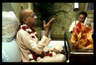 Nesta passagem, menciona-se o sistema de yoga concebido por Patañjali. No Yoga-sūtra de Patañjali, a alma é chamada pratyag-ātmā e parāg-ātmā. Enquanto está apegada ao prazer dos sentidos, a alma é chamada parāg-ātmā, mas logo que a mesma alma se desapega desse gozo dos sentidos, ela é chamada pratyag-ātmā. A alma está sujeita às funções das dez espécies de ar que agem dentro do corpo, e isto se percebe através do sistema respiratório. O método ióguico de Patañjali ensina a controlar as funções do ar do corpo de uma forma técnica para que, por fim, todas as funções do ar interno tornem-se favoráveis a purificar a alma do apego material. De acordo com este sistema de yoga, pratyag-ātmā é a meta última. Esta pratyag-ātmā é afastada das atividades materiais. Os sentidos interagem com os objetos dos sentidos, como o ouvido ao ouvir, os olhos ao verem, o nariz ao cheirar, a língua ao saborear, a mão ao tocar, e assim todos eles se ocupam em atividades fora do eu. Estas são as funções do prāṇa-vāyu. O apāna-vāyu desce, o vyāna-vāyu age contraindo e expandindo, o samāna-vāyu ajusta o equilíbrio, o udāna-vāyu sobe — e quando se ilumina, a pessoa pode ocupar todos estes na busca da auto-realização. | Nesta passagem, menciona-se o sistema de yoga concebido por Patañjali. No Yoga-sūtra de Patañjali, a alma é chamada pratyag-ātmā e parāg-ātmā. Enquanto está apegada ao prazer dos sentidos, a alma é chamada parāg-ātmā, mas logo que a mesma alma se desapega desse gozo dos sentidos, ela é chamada pratyag-ātmā. A alma está sujeita às funções das dez espécies de ar que agem dentro do corpo, e isto se percebe através do sistema respiratório. O método ióguico de Patañjali ensina a controlar as funções do ar do corpo de uma forma técnica para que, por fim, todas as funções do ar interno tornem-se favoráveis a purificar a alma do apego material. De acordo com este sistema de yoga, pratyag-ātmā é a meta última. Esta pratyag-ātmā é afastada das atividades materiais. Os sentidos interagem com os objetos dos sentidos, como o ouvido ao ouvir, os olhos ao verem, o nariz ao cheirar, a língua ao saborear, a mão ao tocar, e assim todos eles se ocupam em atividades fora do eu. Estas são as funções do prāṇa-vāyu. O apāna-vāyu desce, o vyāna-vāyu age contraindo e expandindo, o samāna-vāyu ajusta o equilíbrio, o udāna-vāyu sobe — e quando se ilumina, a pessoa pode ocupar todos estes na busca da auto-realização. | ||