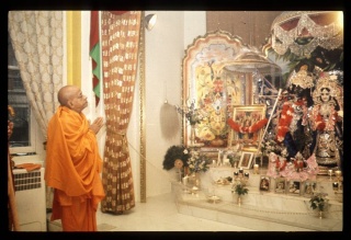 A gátlástalan emberek rögtön a Tizedik Éneknél kezdik az olvasást, főképpen annál az öt fejezetnél, amely az Úr rāsa táncát írja le. A Śrīmad-Bhāgavatamnak ez a része a legbensőségesebb szakasza ennek a magasztos írásnak. Amíg az ember alaposan el nem sajátította az Úrról szóló transzcendentális tudományt, addig biztos, hogy félreérti imádandó, transzcendentális kedvteléseit — a rāsa táncot és szerelmi kapcsolatát a gopīkkal. Magas szintű lelki téma ez, s a rāsa táncot csak a paramahaṁsa szintjét fokozatosan elért felszabadult személyek tudják transzcendentálisan megízlelni. Śrīla Vyāsadeva ezért lehetőséget ad az olvasónak, hogy lépésről lépésre fejlődhessen a lelki megvalósítás terén, mielőtt valóban megízlelné az Úr kedvteléseit. Ezzel a szándékkal idéz egy Gāyatrī mantrát: dhīmahi. Ez a Gāyatrī mantra a lelkileg fejlett emberek számára van. Ha valaki sikeresen vibrálja a Gāyatrī mantrát, behatolhat az Úr transzcendentális helyzetébe. Ezért az embernek brahminikus tulajdonságokra kell szert tennie, azaz teljes mértékben a jóság szintjén kell megállapodnia ahhoz, hogy sikeresen vibrálhassa a Gāyatrī mantrát, s hogy azután elérje az Úr, az Ő neve, dicsősége, tulajdonságai stb. transzcendentális megvalósításának szintjét. | A gátlástalan emberek rögtön a Tizedik Éneknél kezdik az olvasást, főképpen annál az öt fejezetnél, amely az Úr rāsa táncát írja le. A Śrīmad-Bhāgavatamnak ez a része a legbensőségesebb szakasza ennek a magasztos írásnak. Amíg az ember alaposan el nem sajátította az Úrról szóló transzcendentális tudományt, addig biztos, hogy félreérti imádandó, transzcendentális kedvteléseit — a rāsa táncot és szerelmi kapcsolatát a gopīkkal. Magas szintű lelki téma ez, s a rāsa táncot csak a paramahaṁsa szintjét fokozatosan elért felszabadult személyek tudják transzcendentálisan megízlelni. Śrīla Vyāsadeva ezért lehetőséget ad az olvasónak, hogy lépésről lépésre fejlődhessen a lelki megvalósítás terén, mielőtt valóban megízlelné az Úr kedvteléseit. Ezzel a szándékkal idéz egy Gāyatrī mantrát: dhīmahi. Ez a Gāyatrī mantra a lelkileg fejlett emberek számára van. Ha valaki sikeresen vibrálja a Gāyatrī mantrát, behatolhat az Úr transzcendentális helyzetébe. Ezért az embernek brahminikus tulajdonságokra kell szert tennie, azaz teljes mértékben a jóság szintjén kell megállapodnia ahhoz, hogy sikeresen vibrálhassa a Gāyatrī mantrát, s hogy azután elérje az Úr, az Ő neve, dicsősége, tulajdonságai stb. transzcendentális megvalósításának szintjét. | ||