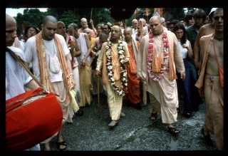 Valójában nem halunk meg. A halálkor csupán tétlenek maradunk egy ideig, ugyanúgy, mint alvás közben. Éjszaka alszunk, s minden cselekedetünk megszűnik, amint azonban felkelünk, emlékezetünk visszatér, és azt gondoljuk: „Ó, hol vagyok? Mit kell most tennem?” Ezt nevezik suptotthita-nyāyának. Tételezzük fel, hogy meghalunk. Meghalni azt jelenti, hogy egy időre tétlenné válunk, majd újra hozzákezdünk cselekedeteinkhez. Ez életről életre bekövetkezik, karmánknak, azaz tetteinknek, és a svabhāvánknak, a társulásból származó természetünknek megfelelően. Ha a lelki élet tetteihez látva felkészülünk rá, akkor most, az emberi életben visszatérhetünk valódi életünkhöz, s elérhetjük a tökéletességet, másképp a karma, a svabhāva, a prakṛti stb. szerint különböző életeink és cselekedeteink folytatódnak, s ugyanígy folytatódik majd számunkra a születés és a halál is. Bhaktivinoda Ṭhākura így írt: māyāra vaśe, yāccha bhese, khāccha hābuḍubu bhāi. „Kedves fivéreim! Miért sodornak el benneteket māyā hullámai?” El kell érnünk a lelki szintet, s akkor tetteink örökek lesznek. Kṛta-puṇya-puñjāḥ: erre a szintre azután juthatunk el, hogy sok-sok életen keresztül gyűjtögettük jámbor cselekedeteink eredményeit. Janma-koṭi-sukṛtair na labhyate (Cc. Madhya 8.70). A Kṛṣṇa-tudatú mozgalom véget akar vetni a koṭi-janmának, az ismétlődő születésnek és halálnak. Egyetlen élet alatt az embernek mindent jóvá kell tennie, s el kell jutnia az örök életig. Ez a Kṛṣṇa-tudat.