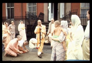 „Ó, legfelsőbb irányító! Hajdanán, mint hal, ló, teknős, Narasiṁhadeva, vadkan, hattyú, az Úr Rāmacandra, Paraśurāma és a félistenek között, mint Vāmana jelentél meg inkarnációként, hogy kegyesen megvédelmezd az egész világot. Most arra kérünk, kegyedet szórva oltalmazz bennünket újra azzal, hogy elpusztítod a zavaró elemeket e világban! Ó, Kṛṣṇa, Yaduk legkiválóbbja! Tisztelettel a hódolatunkat ajánljuk Neked!”