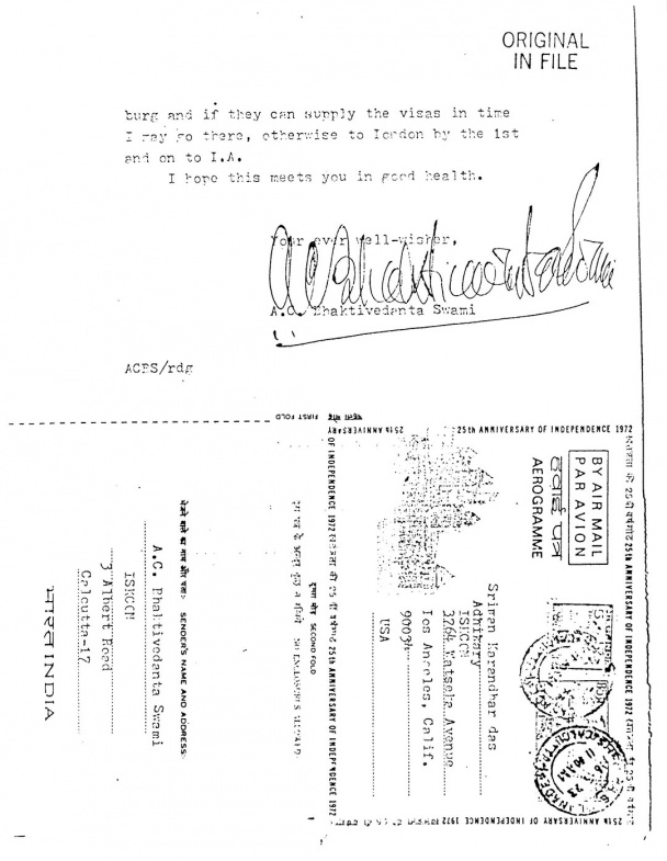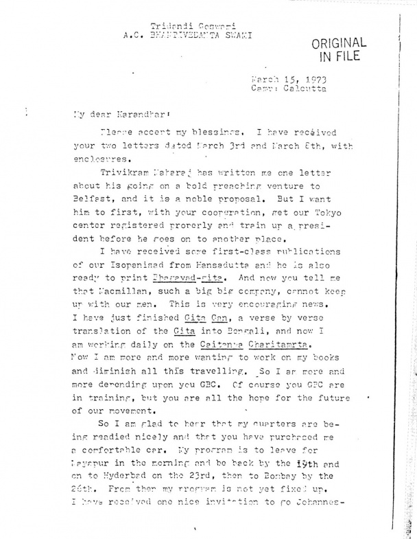 ES/730315 - Carta a Karandhara escrita desde Calcuta